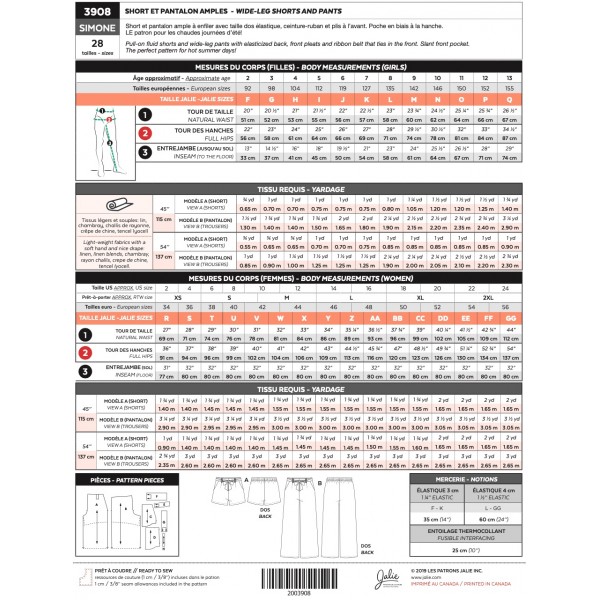 Patron Jalie Simone SIMONE - Short et pantalon amples fillette et femme