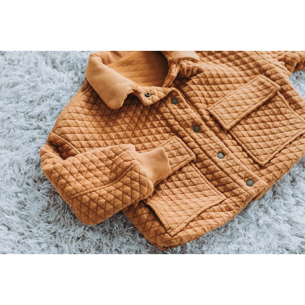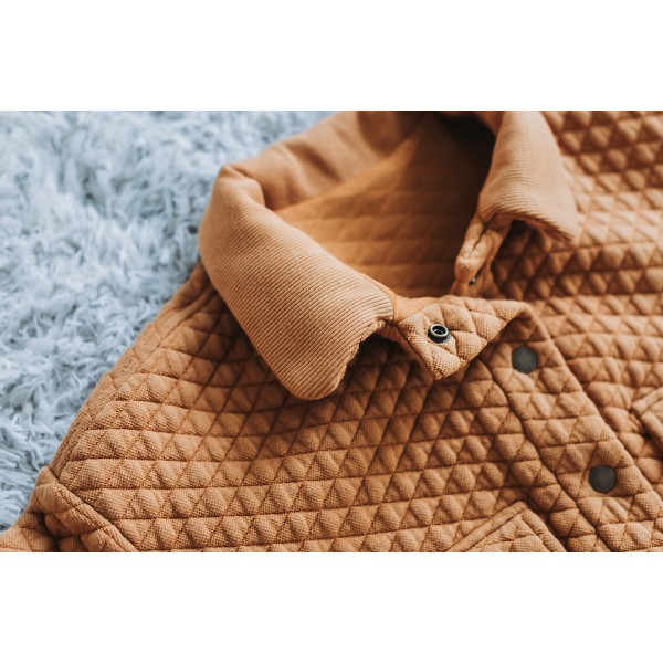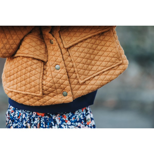 Ce tissu tricoté présente une texture piqué et est rembourré/cousu en matelassage, idéal pour des vestes et pulls élégants.